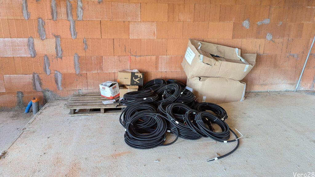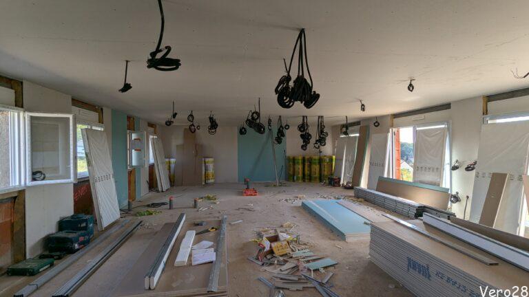 Podczas budowy sufitu i ścianek działowych z płyt gispowo-kartonowych została rozprowadzona instalacja elektryczna w czarnych peszlach. Dodatkowo w tych samych peszlach będzie sieć intranetowa, kable TV satelitarnej oraz kable głośnikowe. Część peszli została wyprowadzona na zewnątrz: punkty oświetleniowe i TV.