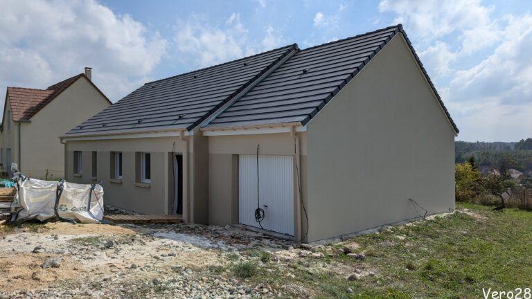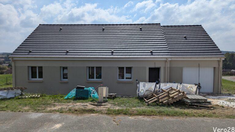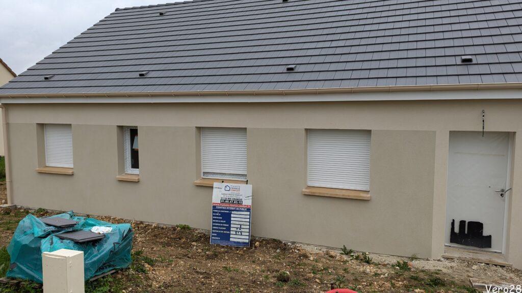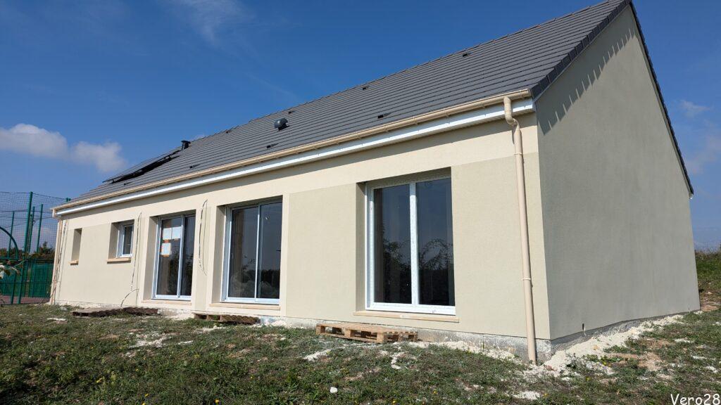 Niestety po tej dacie prace prawie się zatrzymały. Na początku maja poprawiono parapety, w drugiej połowie zainstalowano okna, drzwi i bramę garażową. 17tego czerwca poprawiono panele fotowoltaiczne.